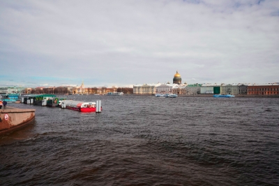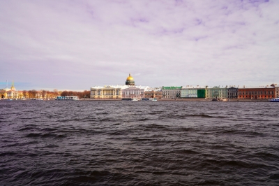 Вид на Исаакиевский собор через Неву с другого берега, Университетская набережная