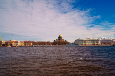 Вид на Исаакиевский собор через Неву с другого берега, Университетская набережная