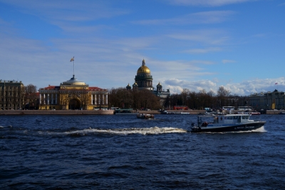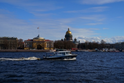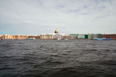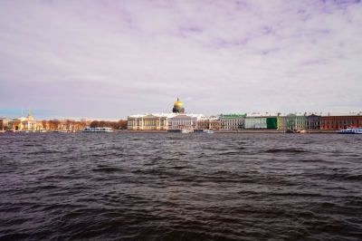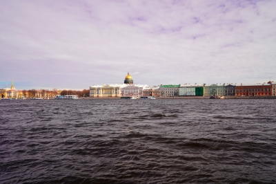Фотография Вид на Исаакиевский собор через Неву с другого берега, Университетская набережная — фотосток InfoPhoto.ru