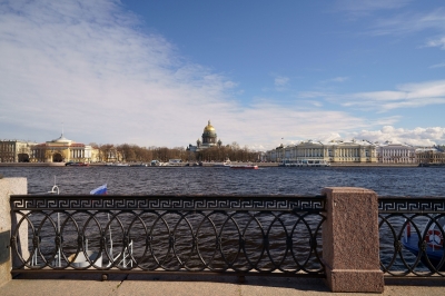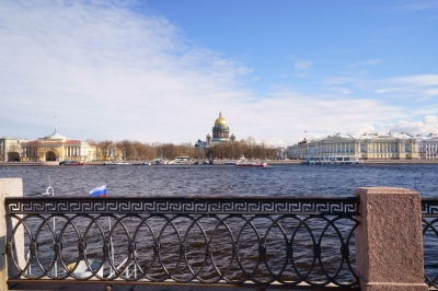 Вид на Исаакиевский собор через Неву с другого берега, Университетская набережная